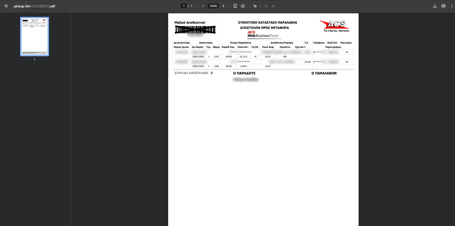 The Collection Manifest is the document you hand to the courier and it includes the vouchers that will be handed over.