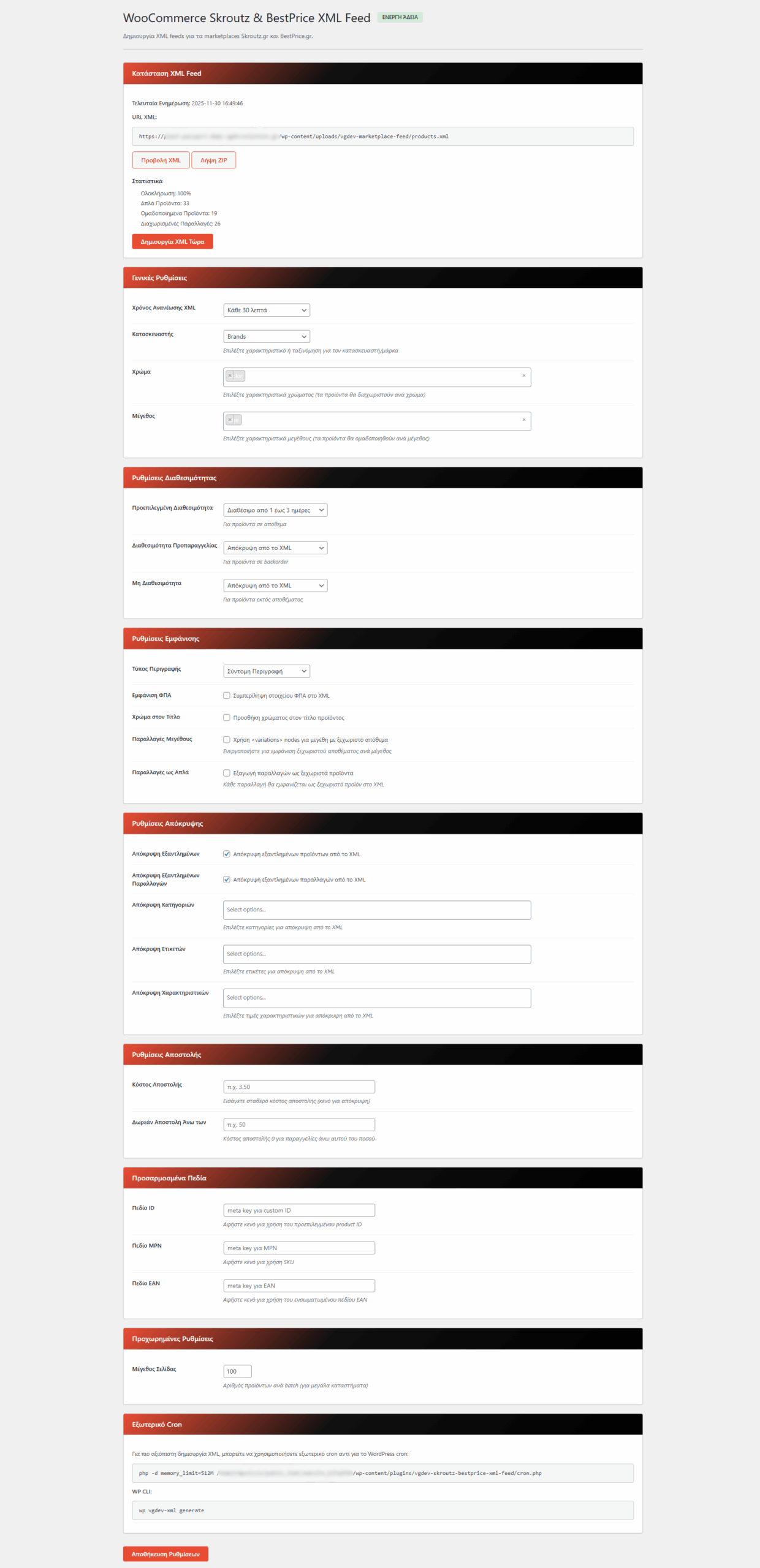 • Αντέγραψε το Skroutz feed URL από τις ρυθμίσεις του plugin