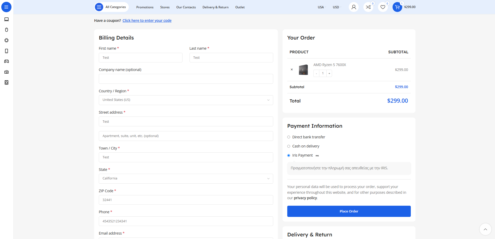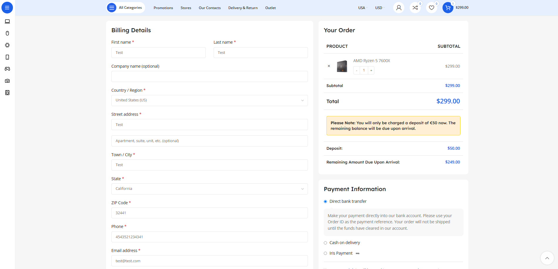 • Add products to cart and proceed to checkout