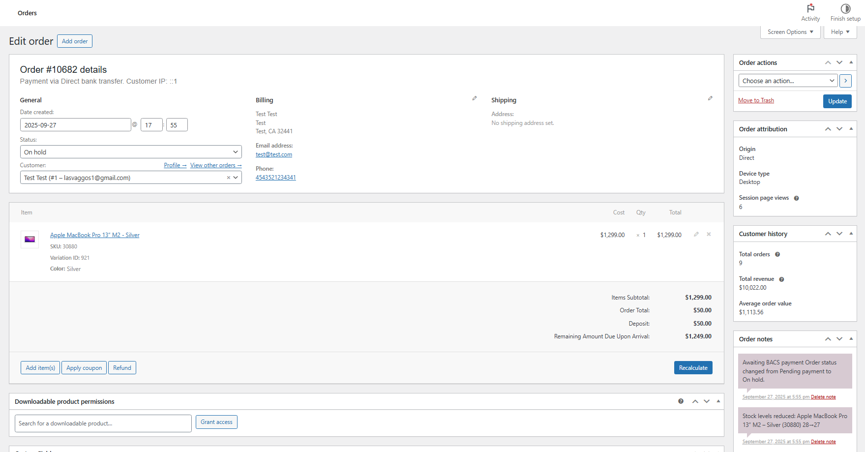 • Admin views order in WooCommerce dashboard